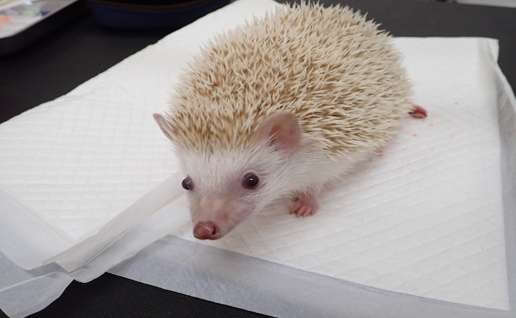 ハリネズミさんの飼育頭数が爆発的に増えたのが2010年代中ごろからでしょうか。年齢もあり、ここ数年でそれらの子たちが病気になり、来院することが増えてきました。急激に人気が高まったせいか、適切な飼育がなされておらず病気になってしまった場合もありますし、高齢になったことで様々なトラブルを抱えることもあります。伴侶動物としての歴史もすごく浅いので、まだまだ正確な情報が得られないということもあります。他の動物同様、高齢になると腫瘍性疾患が多くなるのですが、残念ながらハリネズミさんは普段からよく触るということが難しいため、胸やおなかの中の腫瘍の発見がどうしても遅れます。そのため、ハリネズミさんは定期健診の必要性は他の動物より高いと言えるでしょう。
